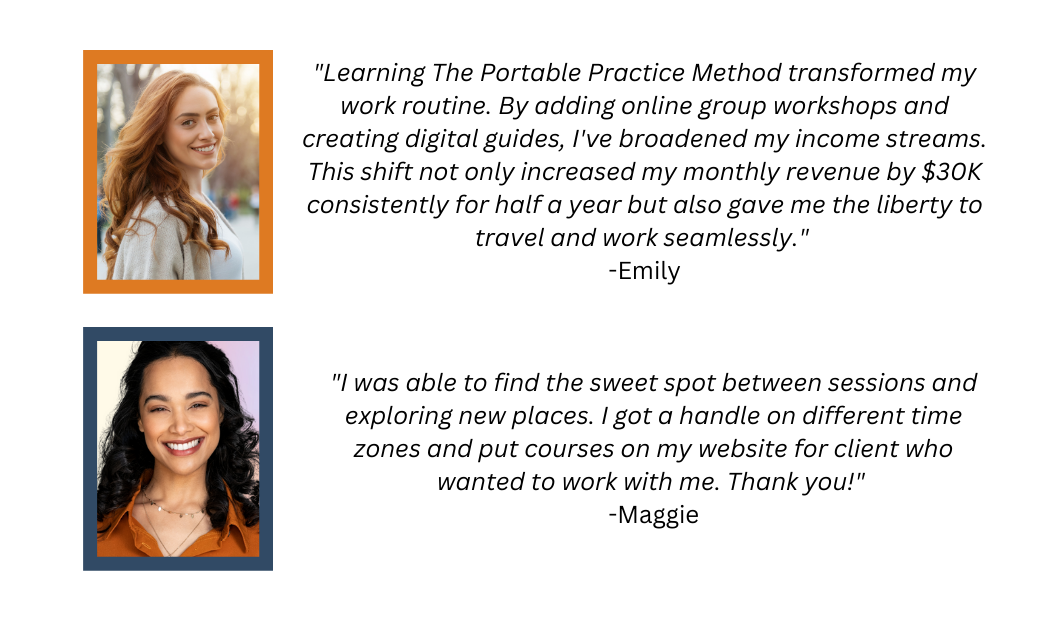 Apply the step-by-step Portable Practice Method to align your private practice with your travel goals